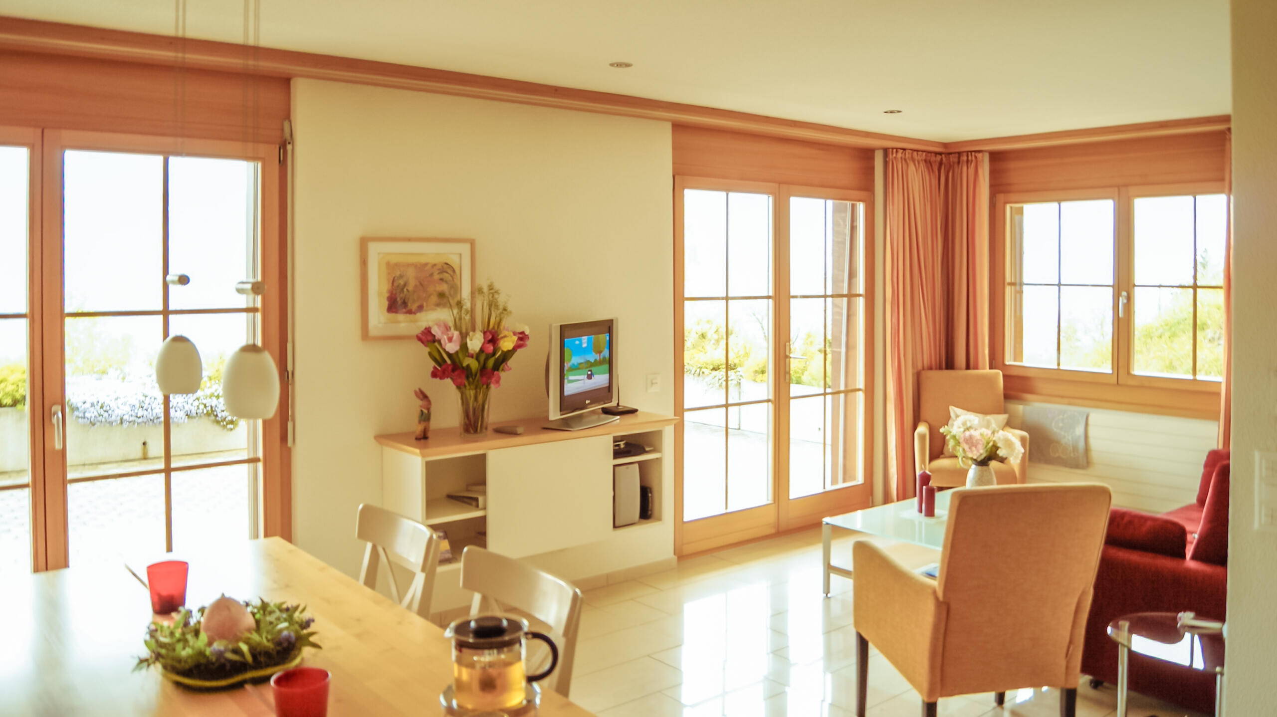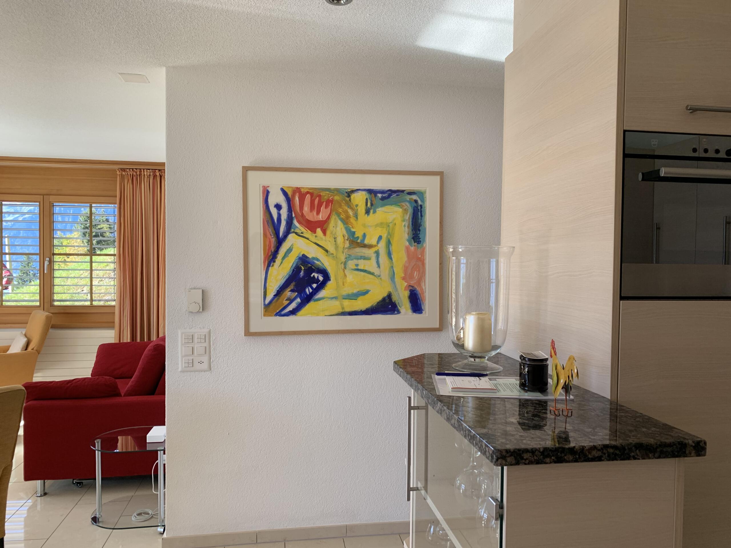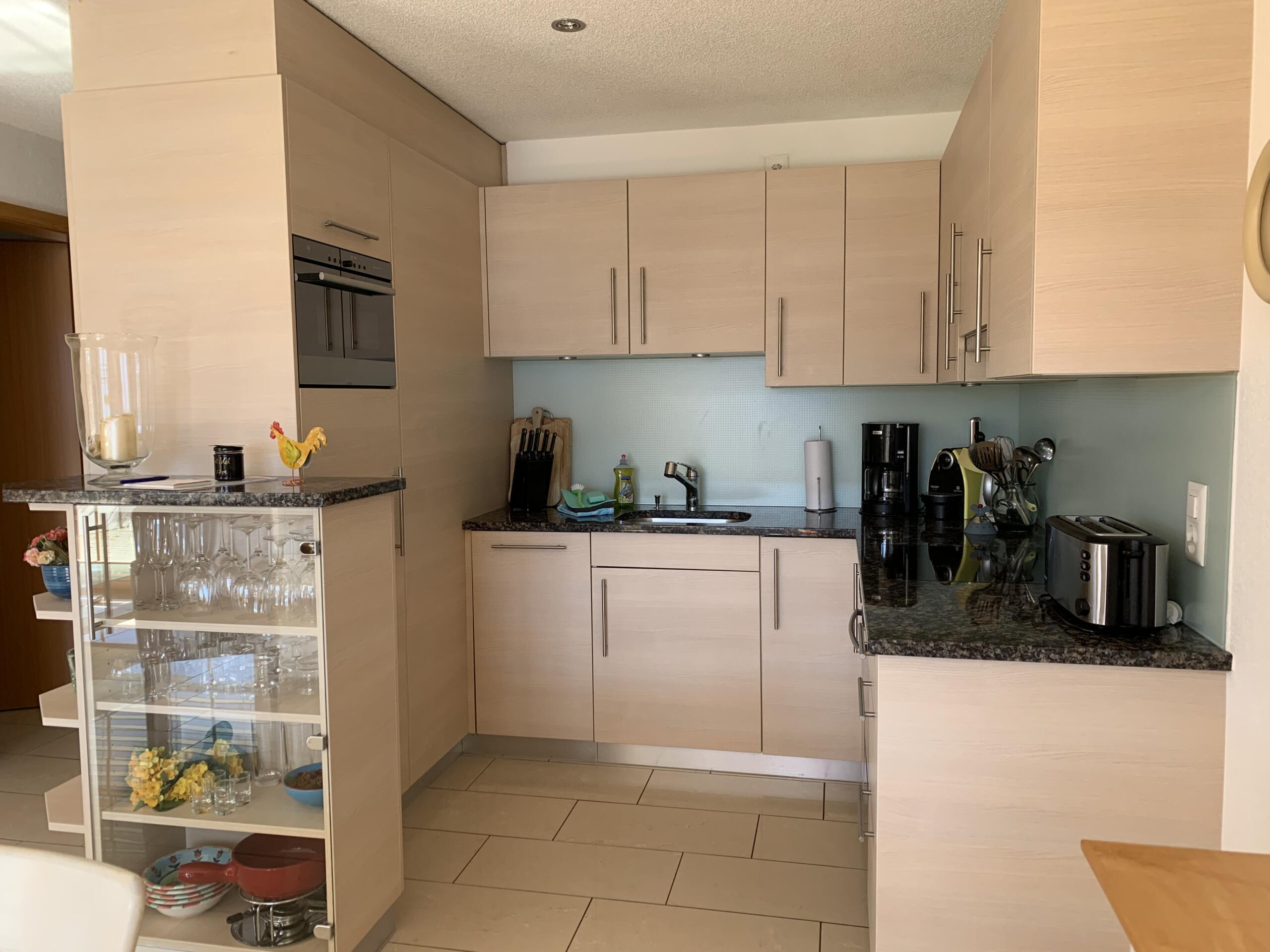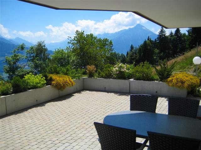 Die Wohnung für 4 Personen ist seit Februar 2005 bezugsfertig und lässt keinen Komfort vermissen. Sie verfügt über zwei Schlafräume, ein Doppelbett und zwei Einzelbetten, Bad und einen Wohn/Essbereich mit voll ausgestatteter Küche. Die große Terrasse mit einem grandiosen 180° Panoramablick über die Gebirgs- und Seenlandschaft lädt zum Verweilen nach einem erlebnisreichen Tag ein. TV, Telefon und Internet-Anschluss gehören zur Selbstverständlichkeit, in der sehr anspruchsvoll eingerichteten Wohnung. Zu dieser gehört auch eine Garage, in der Ihr PKW trocken und sicher untergebracht werden kann.